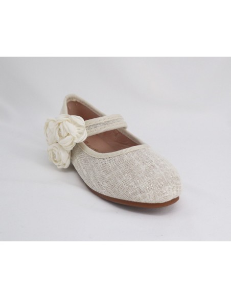 MERCEDITAS COLOR BLANCO PARA FIESTA. TEJIDO ARPILLERÍA CON BRILLOS, CIERRE VELCRO CON ADORNO DE LAZO DE RASO. SUELA DE GOMA.