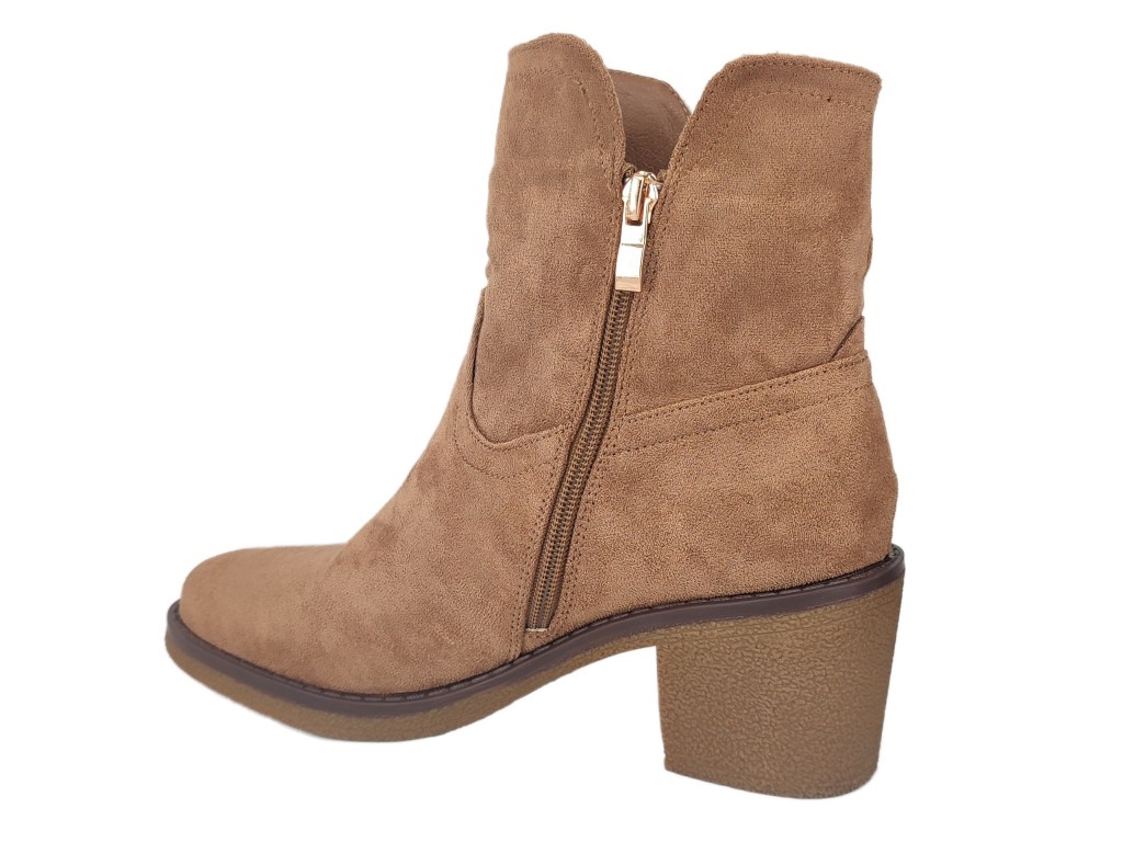 BOTÍN DE ANTELINA CAMEL. SUELA DE GOMA . TACÓN CUADRADO DE 7CM. CREMALLERA INTERNA PARA MÁS COMODIDAD A LA HORA DE CALZARLO.