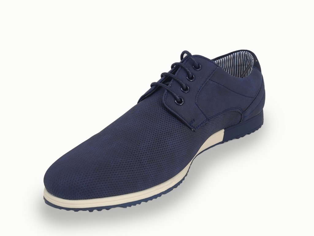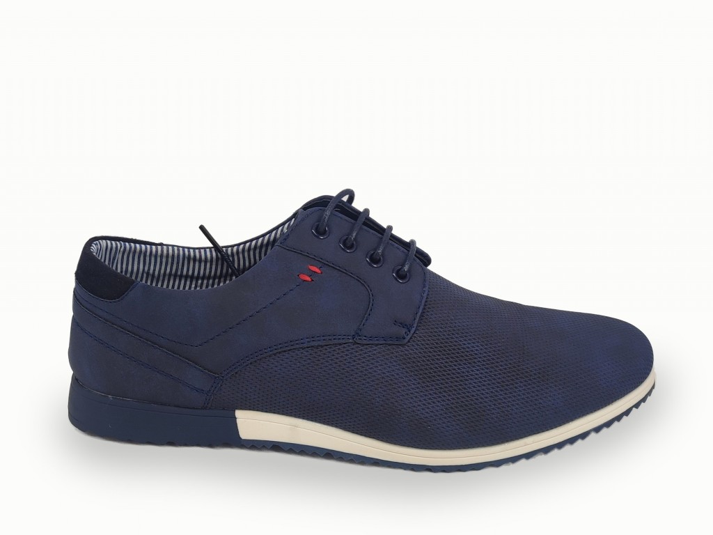 BLUCHER COLOR AZUL MARINO. MATERIAL SINTÉTICO, SUELA DE GOMA. RELIEVE EN PUNTERA Y EMPEINE.