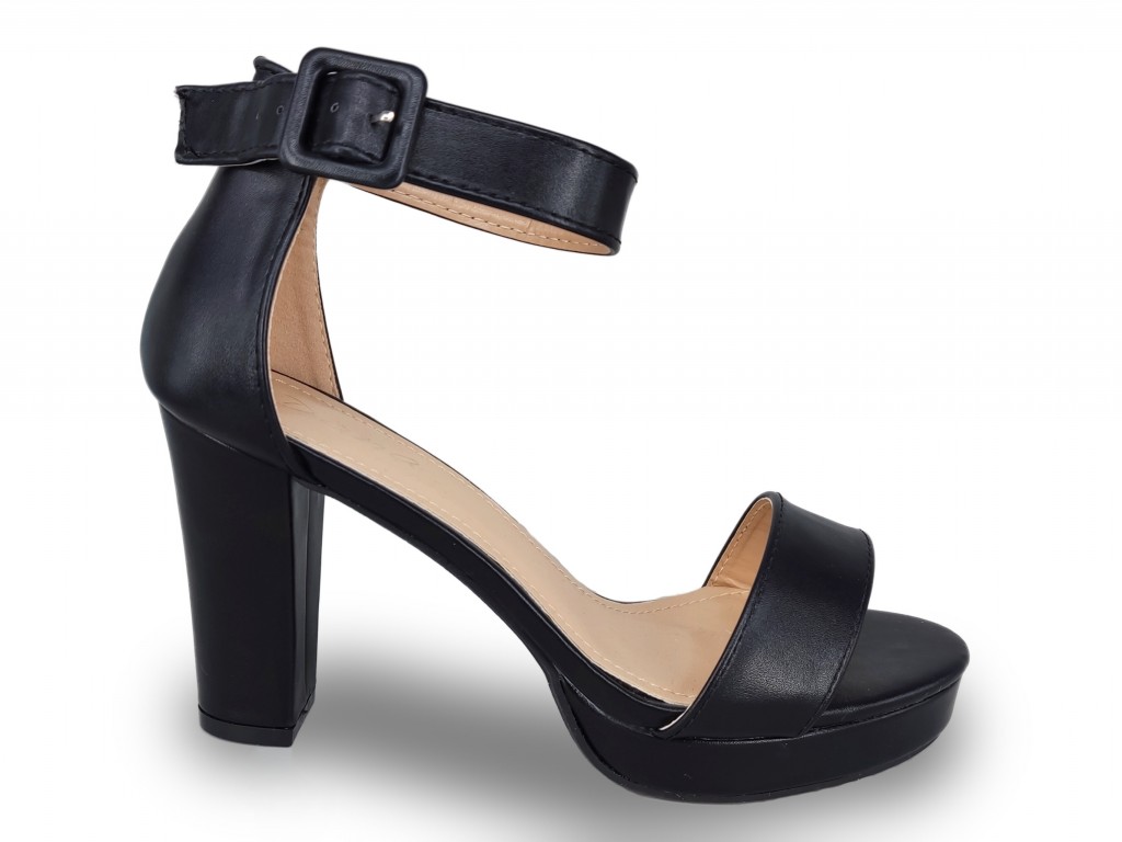 SANDALIA DE VESTIR COLOR NEGRO.TACÓN CUADRADO DE 9CM Y PLATAFORMA DE 3 CM APROX.