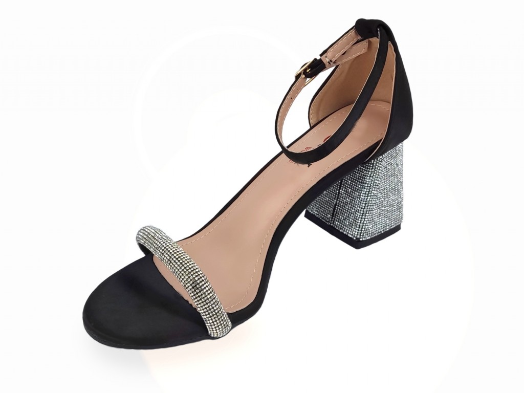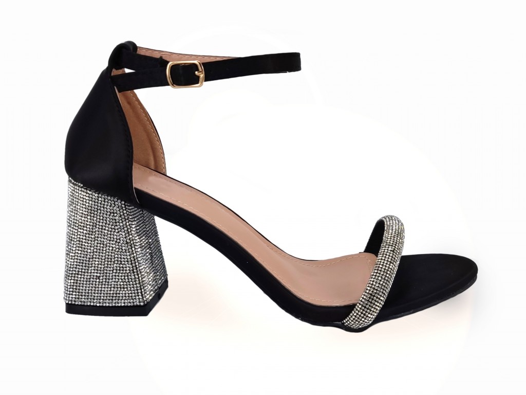 SANDALIA COLOR NEGRO CON STRASS PARA FIESTA. TACÓN CUADRADO DE 7 CM APROX.