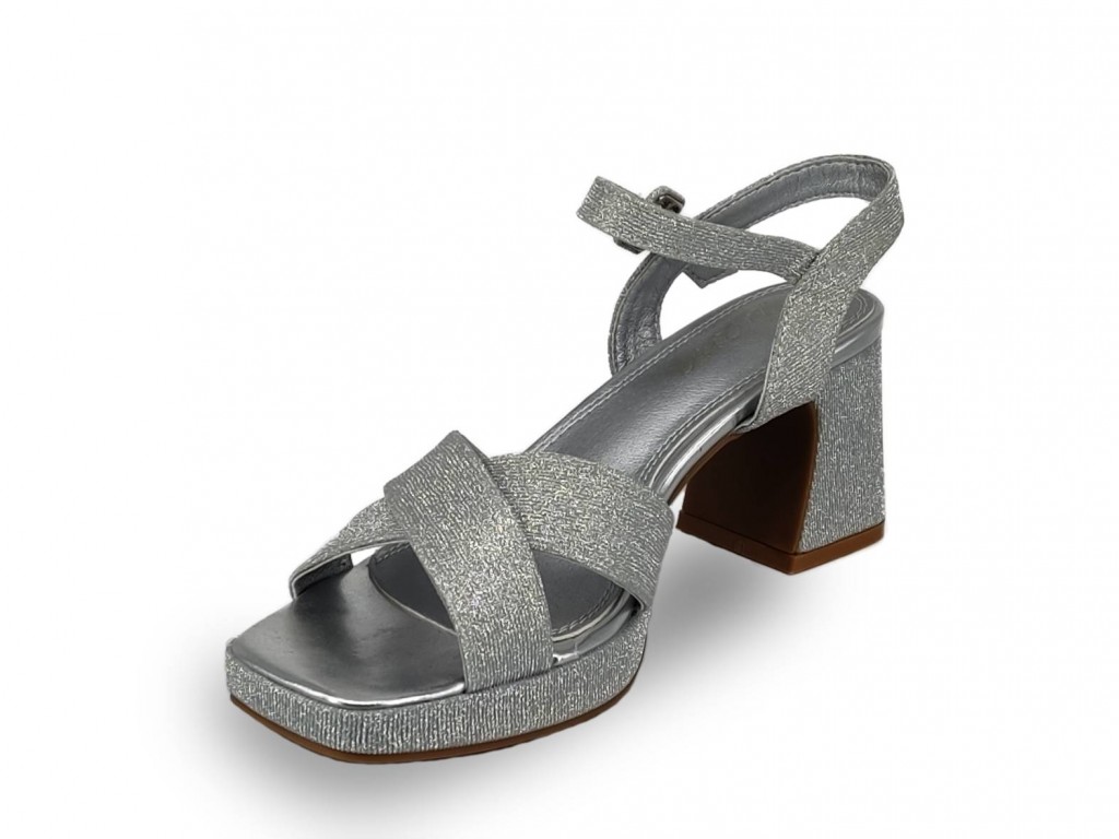 SANDALIA FIESTA BRILLOS, TACÓN BAJO.