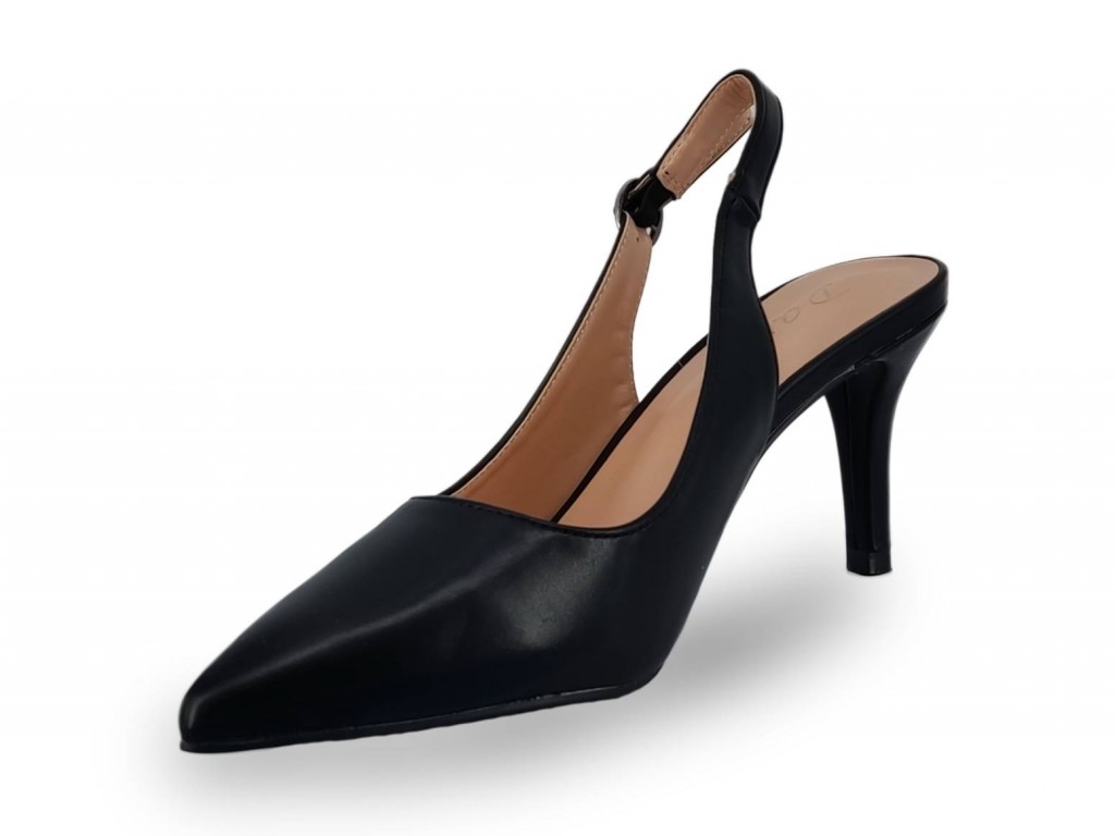 SANDALIA DE VESTIR COLOR NEGRO CHAROL. PULSERA AL TOBILLO. TÁCON CUADRADO DE 9.5 CM APROX. PLATAFORMA DE 2 CM.