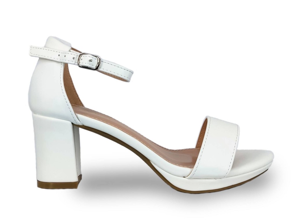 SANDALIA DE VESTIR COLOR BLANCO. MATERIAL POLIPIEL. TACÓN DE 6.5 CM, PLATAFORMA DE 2 AM APROX.