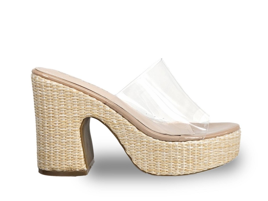 MULE CON PALA TRANSPARENTE, TACÓN DE 10 CM APROX, PLATAFORMA DE 4 CM.