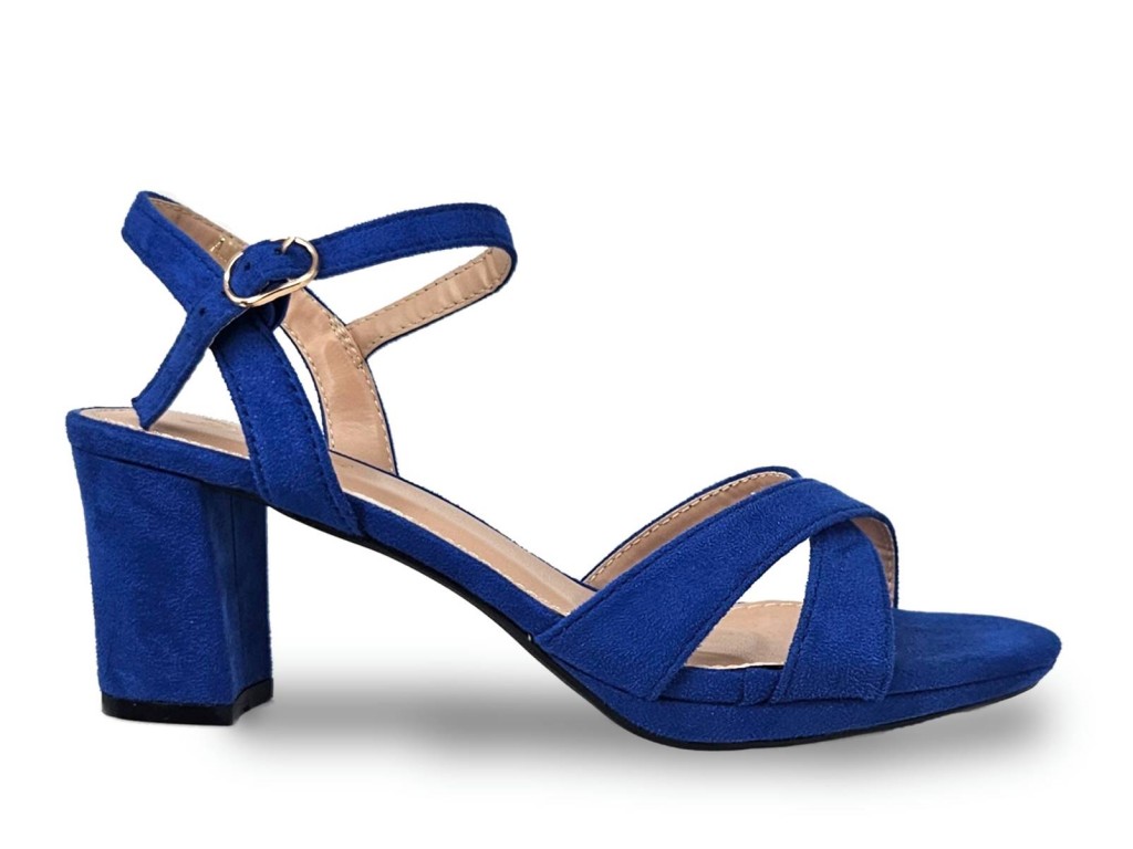 SANDALIA DE ANTELINA COLOR AZUL. TACÓN CUADRADO DE 7.5 CM APROX, PLATAFORMA DE 2 CM.
