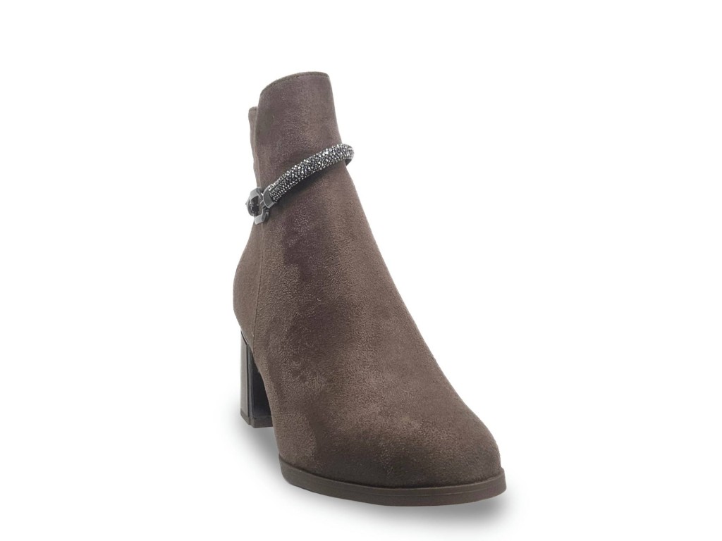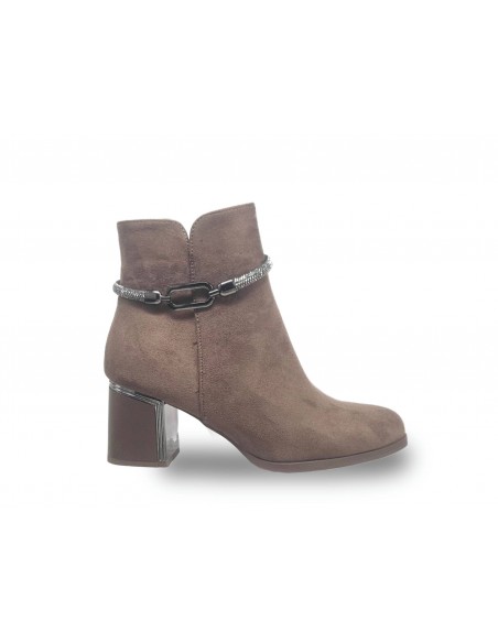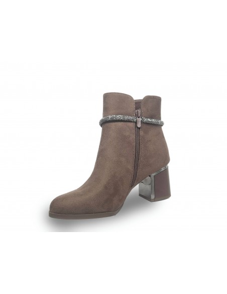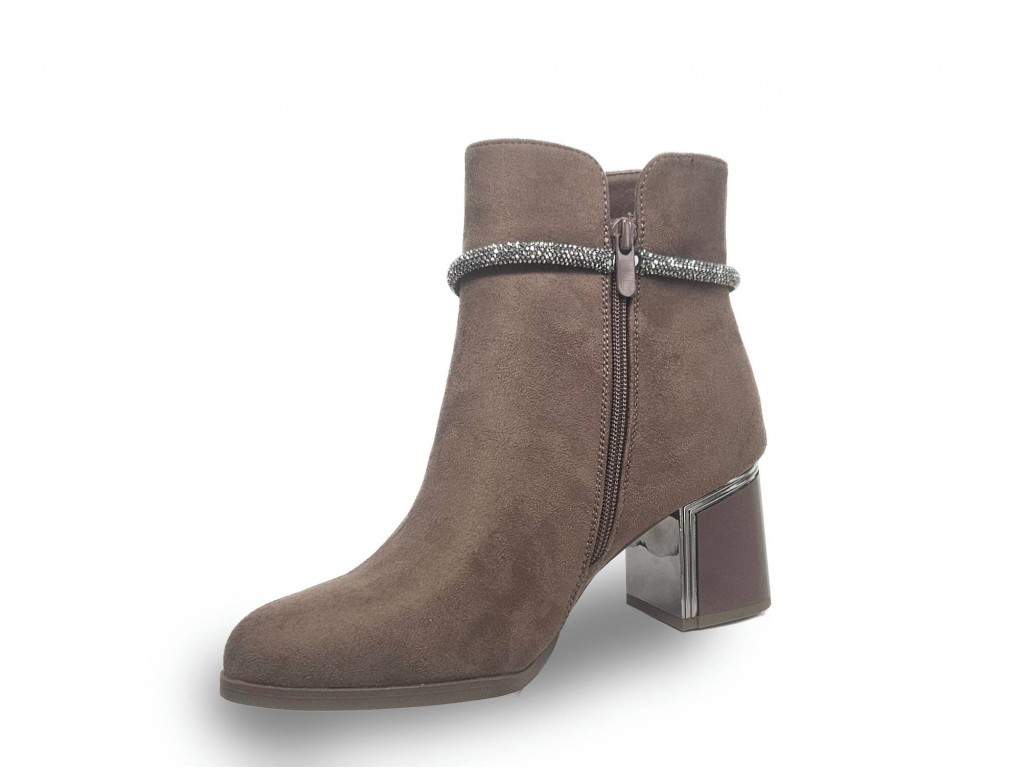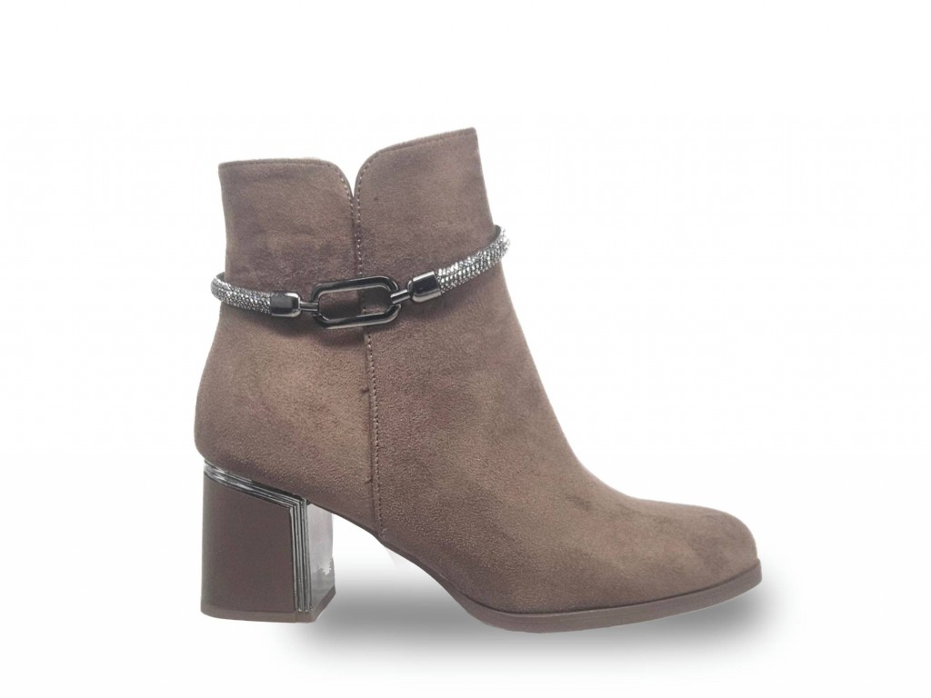 BOTIN DE ANTELINA COLOR MOCA. ADORNO TIRA DE STRASS. TACÓN CUADRADO DE 6.5 CM APROX. CREMALLERA INTERIOR.
