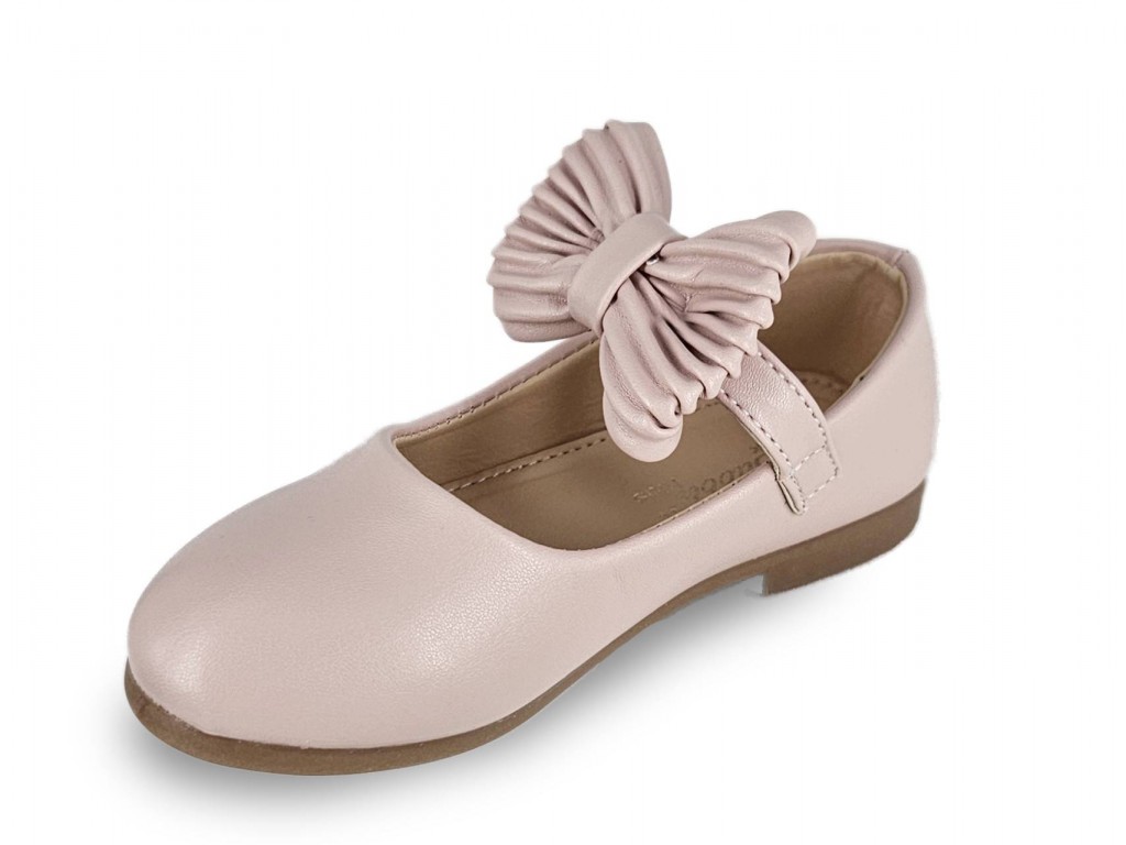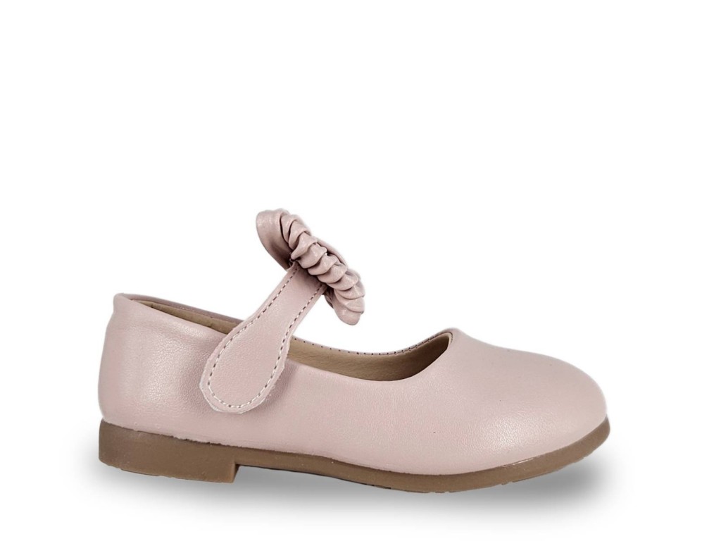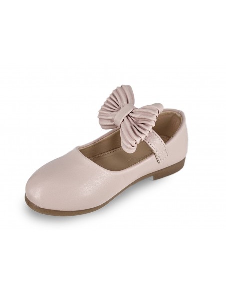 MERCEDITAS COLOR ROSA DE POLIPIEL CON ADORNO DE LAZO. CIERRE VELCRO. TALLAS DE LA 25 A LA 30. MARCA BUBBLE KIDS.