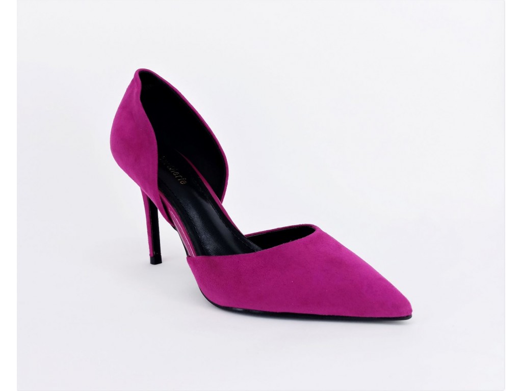 STILETTO DESTALONADO DE VESTIR. COLOR BUGANVILLA, MATERIAL ANTELINA. TACÓN DE 8.5 CM APROX.